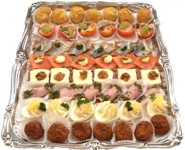 Hapjes € 0,60 p.st. Verschillende Kaassoorten, Leverworst, Paardenworst, Grillworst, Cervelaat met Ui en Augurk met Gehaktballetje